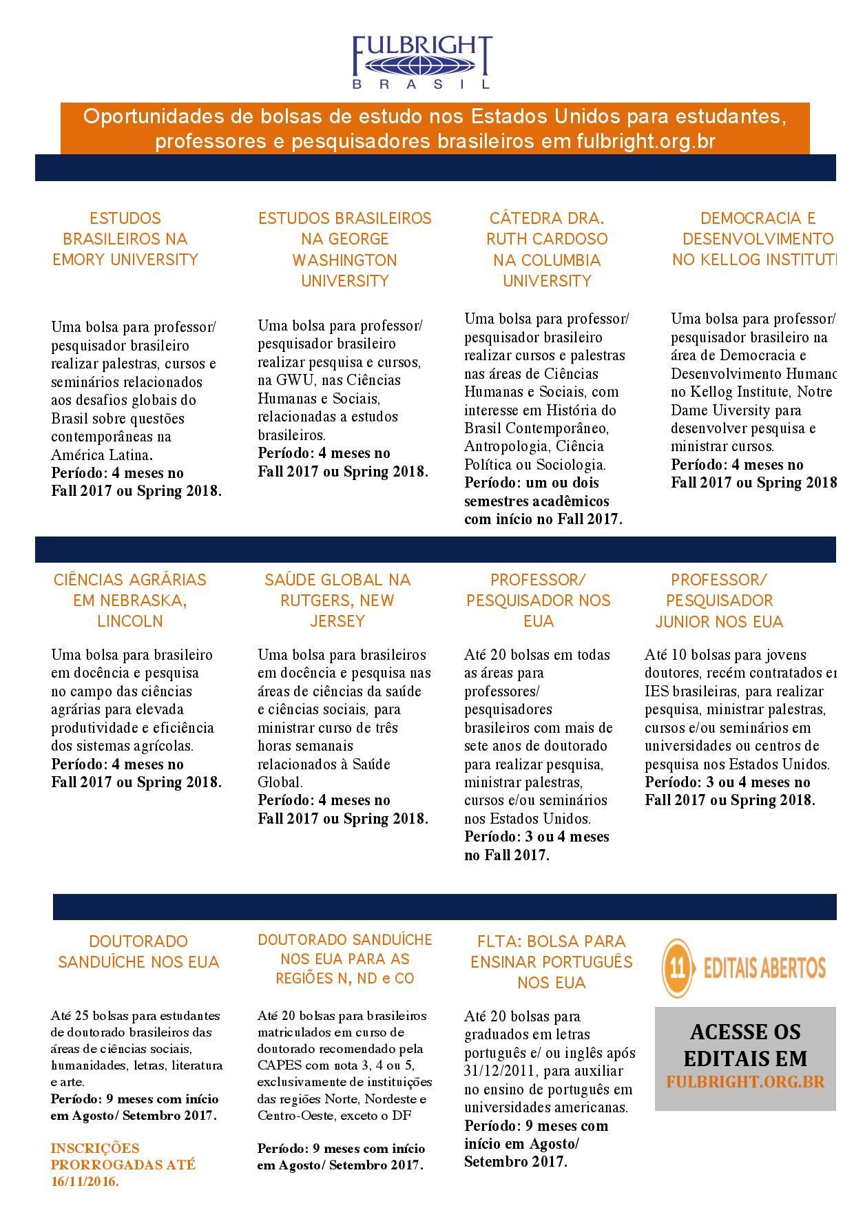 Oportunidades de bolsas de estudo nos Estados Unidos para estudantes, professores e pesquisadores brasileiros